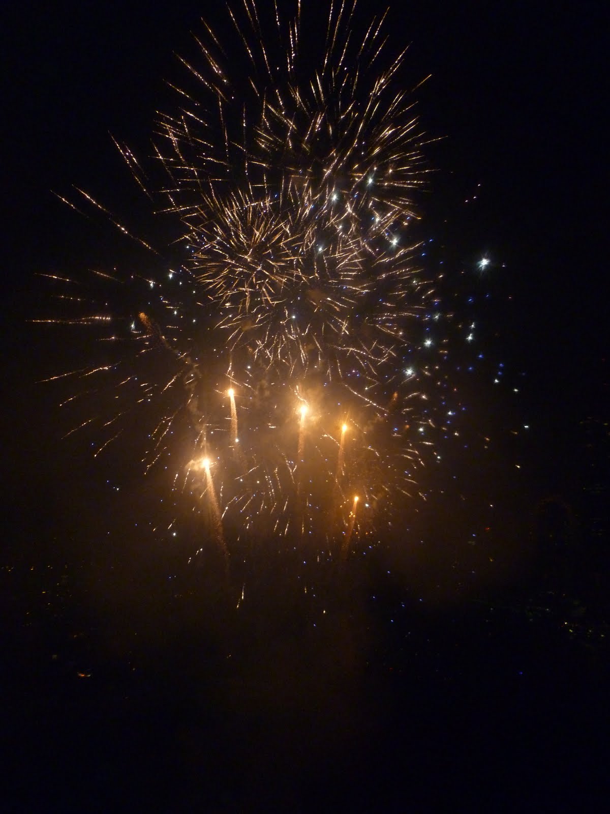 It kind of looks like the bridge is on fire. Not so, just some good fireworks.